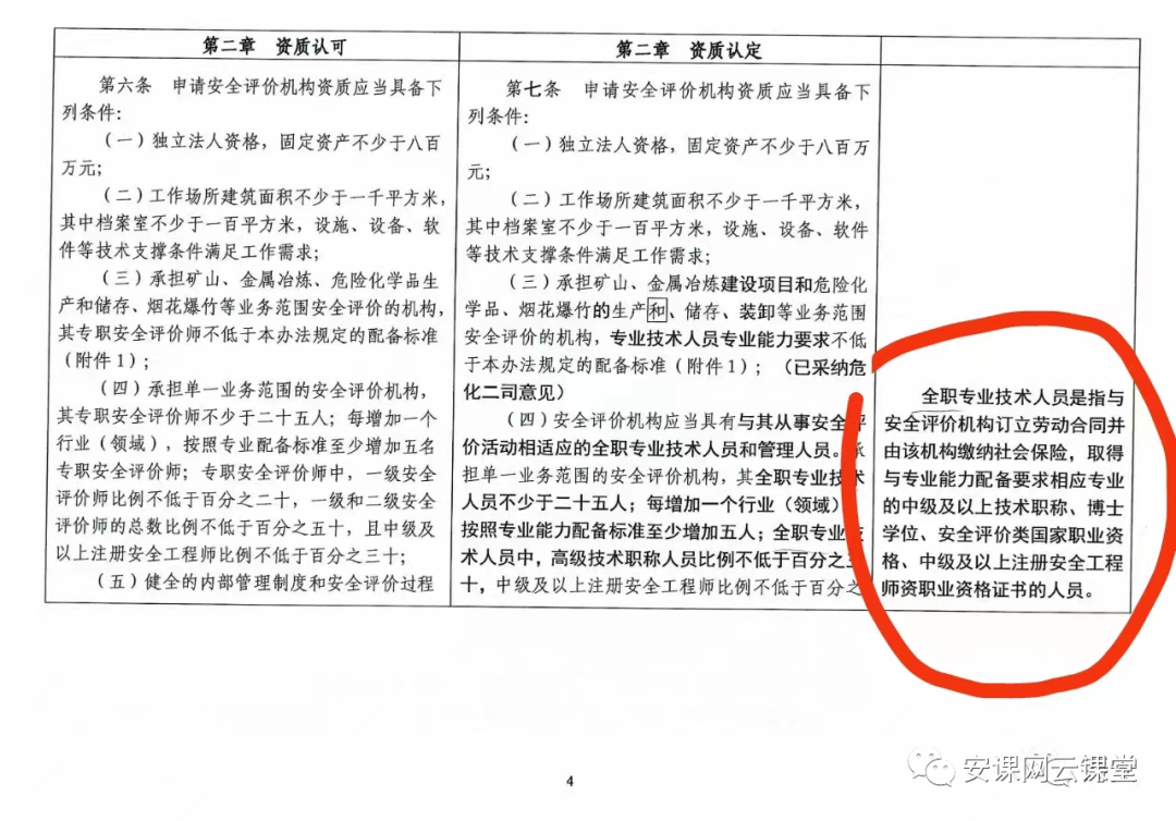 [color=rgba(0, 0, 0, 0.9)]除了官方正式发布的文件外,最近网上流传了应急管理部1号令《安全评价检测检验机构管理办法》的内部修改稿。根据这个版本,已经取消了安全评价师的数量要求,取而代之的是全职专业技术人员。同时要求技术人员中高级职称的技术人员占比不小于30%,注册安全工程师占比不小于30%。 [color=rgba(0, 0, 0, 0.9)]