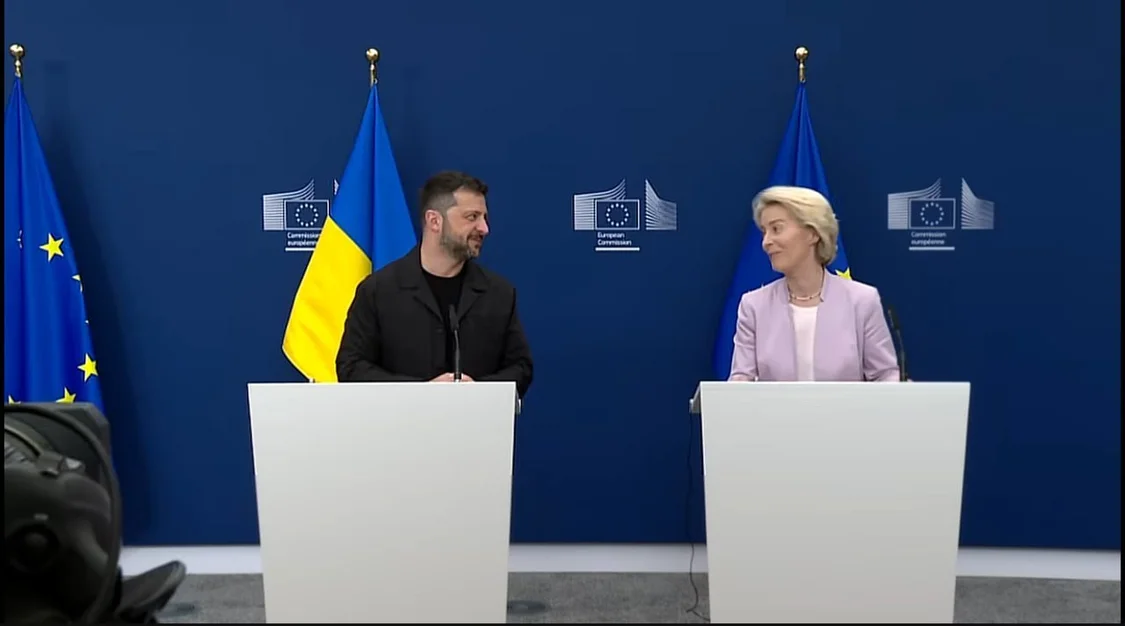 当地时间8月17日,乌克兰总统泽连斯基在布鲁塞尔与欧盟委员会主席冯德莱恩会见,并举行联合新闻发布会。