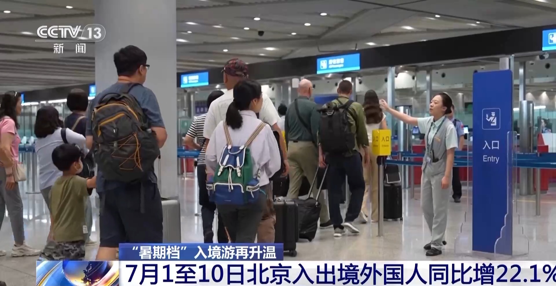 [size=0.8]当前进入暑期,海外学生和亲子家庭的研学入境游人数也明显增加,7月1日至7月10日,北京口岸出入境人员量达64万余人次,其中出入境外国人达17.1万人次,同比增长22.1%,