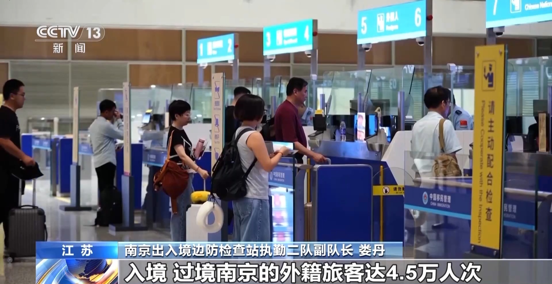 [size=0.8]南京出入境边防检查站执勤二队副队长 娄丹:口岸流量旺的背后是政策持续的优化,上半年享受各类免签便利入(过)境南京的外籍旅客达4.5万人次,占入境外籍旅客总数的60.55%。