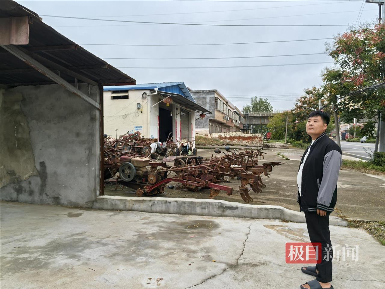 [size=0.6]董先生站在被撞毁的院墙缺口旁(极目新闻记者詹钘摄)