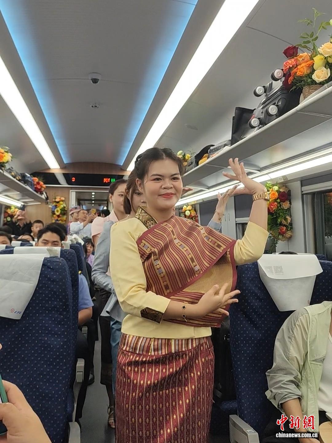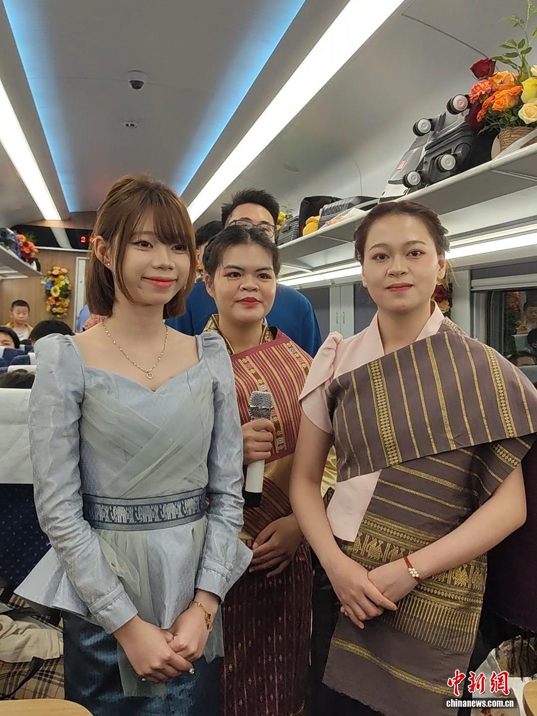[size=0.8]老挝留学生吉姆握着话筒,用略带口音的中文向车厢内的旅客问好。她身着一袭流光溢彩的传统服饰,站在C9521次中老铁路国际列车的走道中央,笑意粲然。窗外,云南山水如画卷般缓缓掠过。