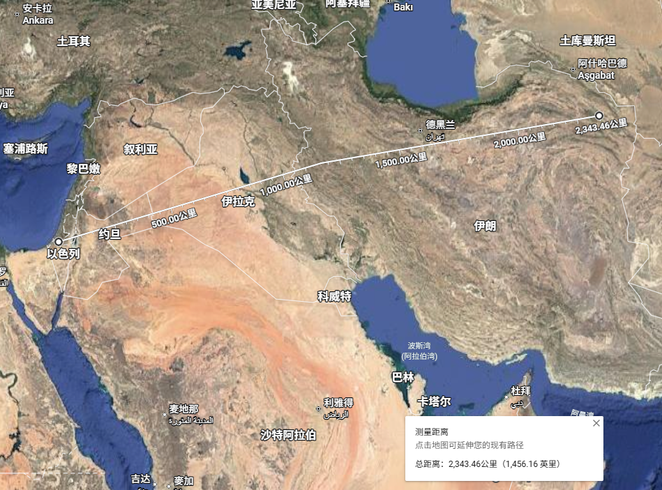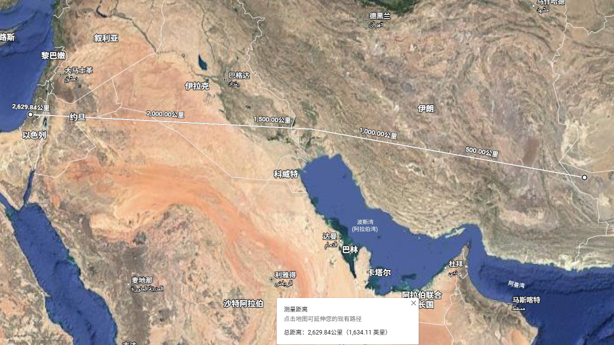 [size=0.6]以色列对卡塔尔的打击横跨整个沙特,距离达到1600km以上