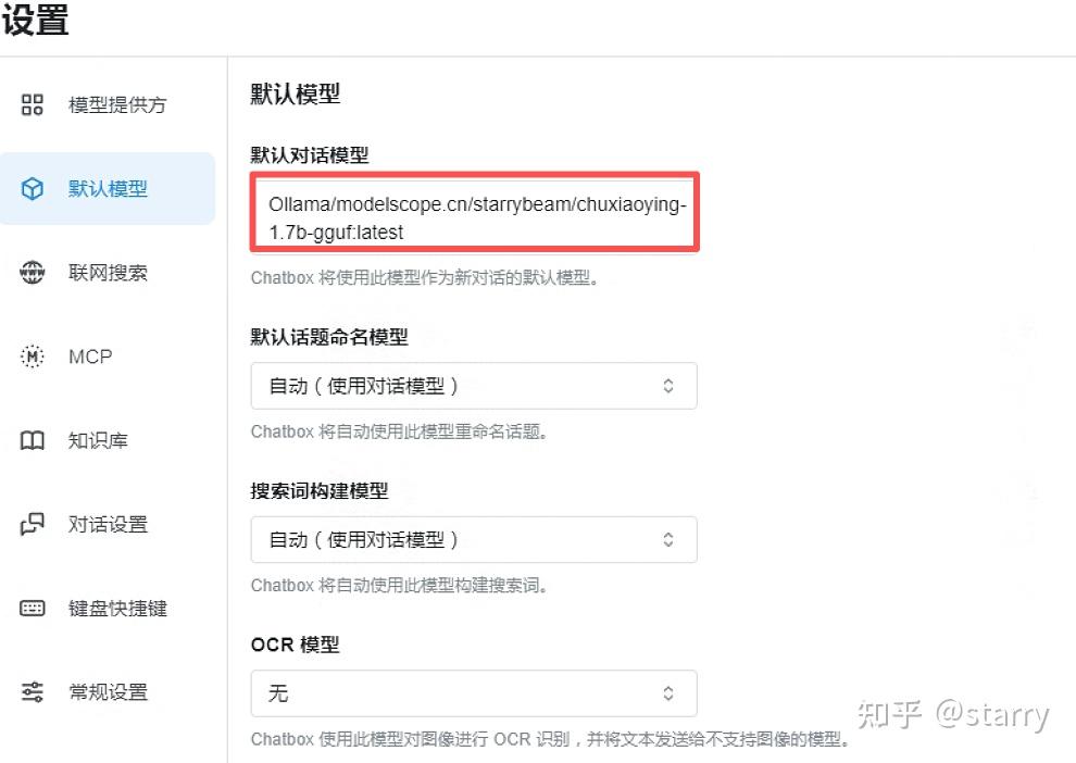 此外还需要设置默认模型,选择你上面下载的模型即可
