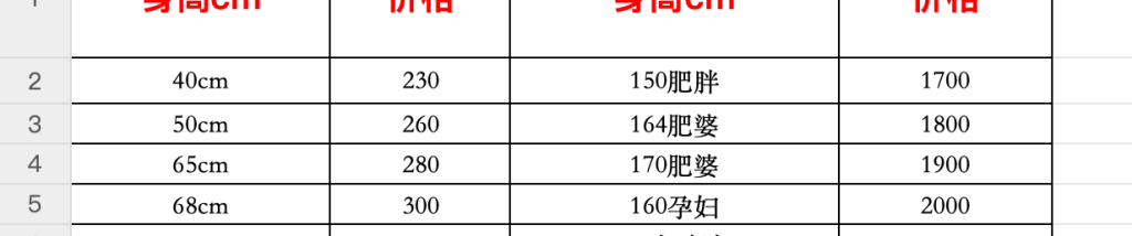 [size=0.8]后来,陈娇发来一些关于产品的报价表、娃娃体型表和头型表。记者在表内看到,产品价格在230元到3700元不等,且标注所有身体搭配PVC、硅胶、树脂头。令人诧异的是,身高为160cm的“孕妇娃娃”也出现在报价表中供选择。此外,恒温加热、夹吸等功能供选配,价格在50元到850元不等。