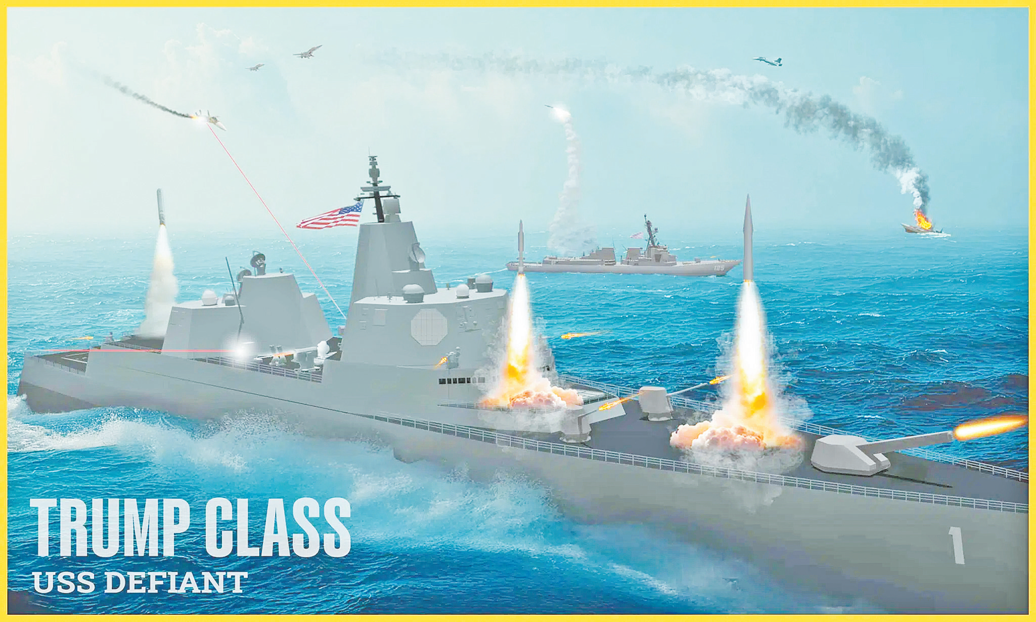 [size=0.6]“特朗普”级战列舰首舰“无畏”号作战概念图。(美国海军)