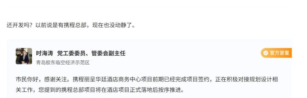 携程总部项目落青岛有了官方回应!