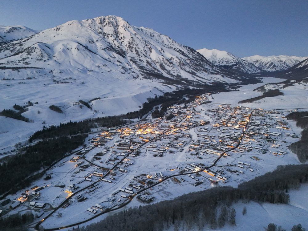 新疆阿勒泰可可托海国际滑雪度假区(2026年1月17日摄,无人机照片)。新华社记者 胡虎虎 摄