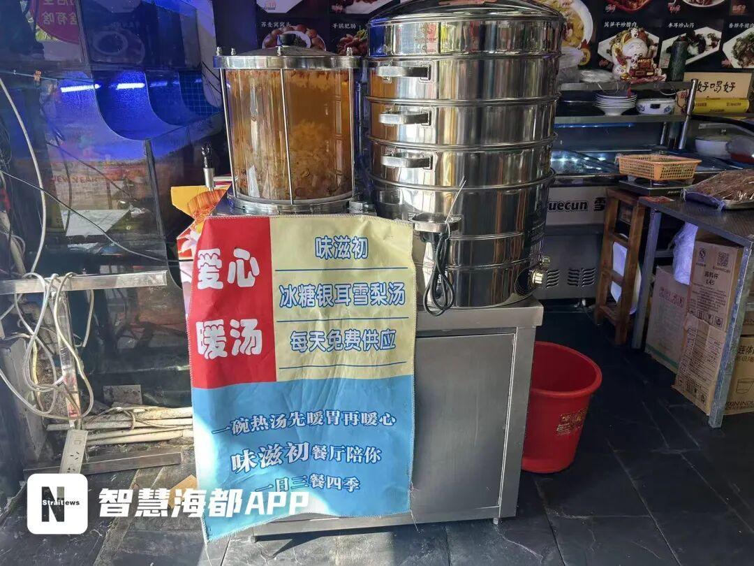 [size=0.8]除了免费爱心餐,小店从年前开始,就坚持每天现熬冰糖雪梨银耳汤,免费提供给所有到店的人,无论是否消费,都能自取饮用。