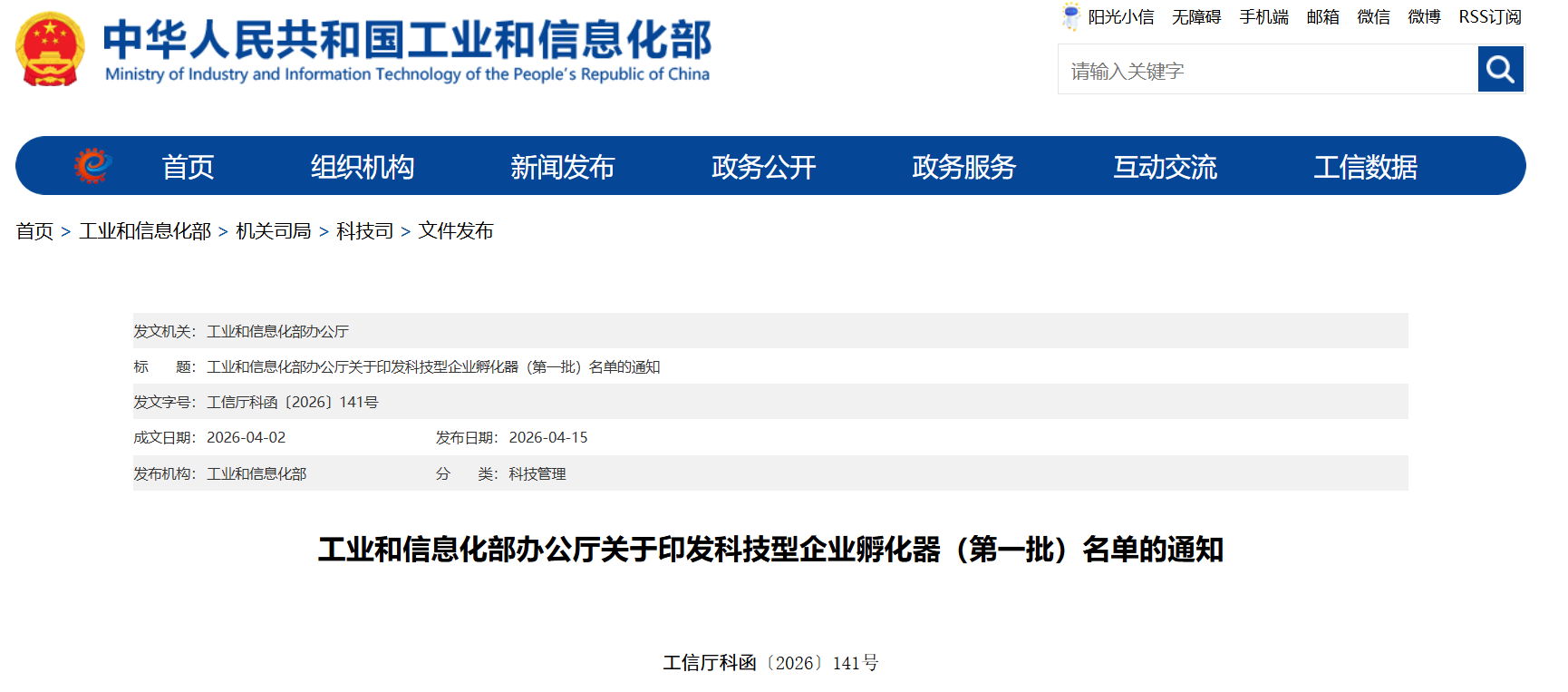 原标题:工信部公布首批科技型企业孵化器 山东34家入选